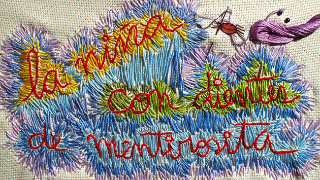 Cambiar de dientes no es nada fácil, requiere fuerza para ir creciendo y hacer las cosas por uno mismo, como también pensar e ir resolviendo las situaciones de la mejor manera que cada quien puede hacerlo. La niña con dientes de mentirosita es una narración corta e ilustrada a partir de escenarios tridimensionales y hechos a mano, sobre los días de una niña que con el cambio de dientes descubre la fuerza de su independencia y el poder de su imaginación, mientras se acostumbra a su nueva y única sonrisa.