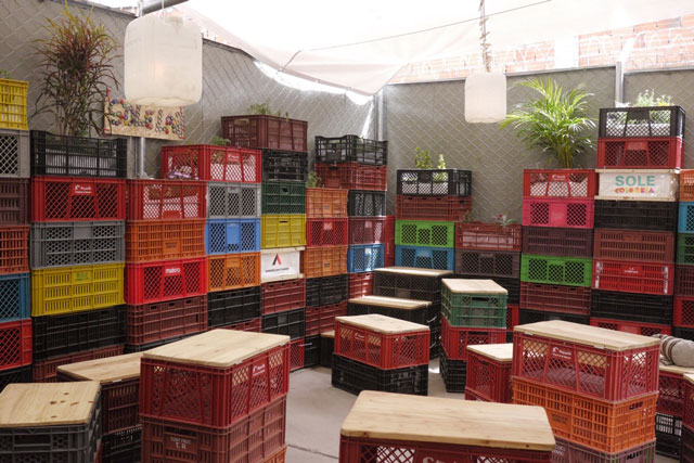 Comprender que hay espacios en la ciudad que pertenecen a organizaciones privadas pero que destinados en pequeñas porciones a la comunidad, activan su desarrollo en todos los sentidos, nos condujo al planteamiento de un diseño efímero, con un mobiliario flexible, que propicia diferentes formas de distribución, movimiento, cuidado y sentido de pertenencia. A partir de la reutilización de canastas plásticas, diseñamos, modulamos y construimos, en torno a la siembra, un entorno para formular grandes preguntas a través de internet.